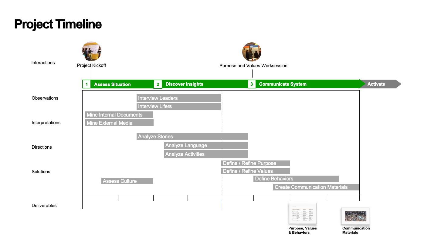 I designed the executive workshop and its activities. Presented findings to leadership, built buy-in, and finalized the purpose and values framework.